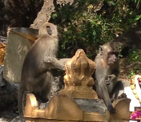 I was surprised and delighted to watch the monkeys roaming the street and especially around the temples, probably waiting for more offerings to the spirits to be left. It was notable that the shops had all erected wire cages around their establishments to keep the mischievous imps at bay.